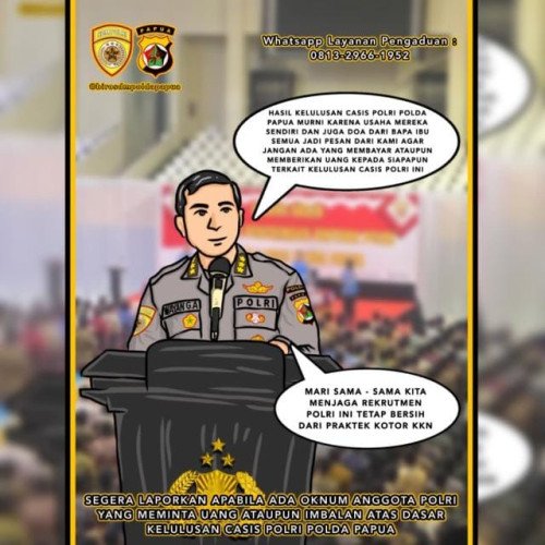 Dir Reskrimum Polda Papua juga mengakhiri penyampaiannya dengan mengimbau kepada masyarakat agar tidak mudah percaya terhadap penawaran seperti demikian, khususnya dalam hal seleksi penerimaan anggota Polri.