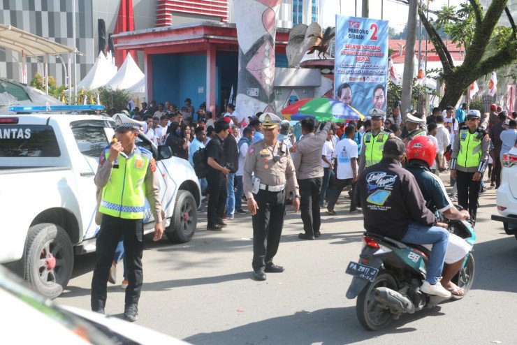 "Untuk kegiatan kampanye kali ini, kami telah menurunkan sekitar 685 personel yang tersebar di berbagai titik strategis. Hal ini dilakukan sebagai langkah preventif guna mengantisipasi potensi gangguan keamanan yang mungkin dilakukan oleh pihak-pihak yang tidak bertanggung jawab selama berlangsungnya kegiatan tersebut," ujar Kabid Humas.