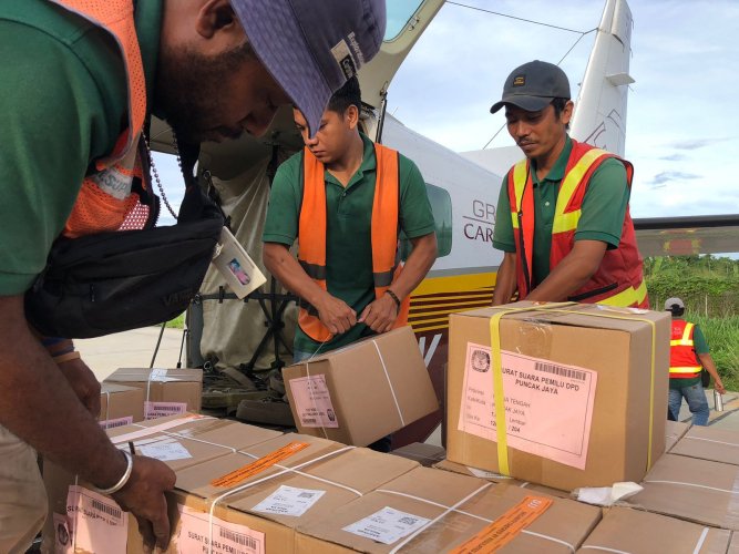 Papuanewsonline.com, Jayapura – Polres Jayapura melalui Polsek Kawasan Bandara Sentani intensif memantau pergeseran logistik Pemilu di Gudang Cargo Outgoing Angkasapura Logistik (APLOG) Bandar Udara Internasional Sentani. Sebanyak 82 koli berisi Surat Suara DPD RI KPU Kab. Puncak Jaya sedang dipindahkan menuju Mulia menggunakan Pesawat Alda Air PK-DLY. Distrik Sentani, Kabupaten Jayapura, Sabtu (13/01/2024)