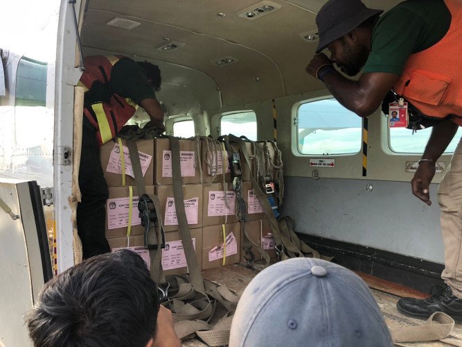 Polisi Pantau Pemindahan Logistik Pemilu DPD RI KPU Kabupaten Puncak Jaya