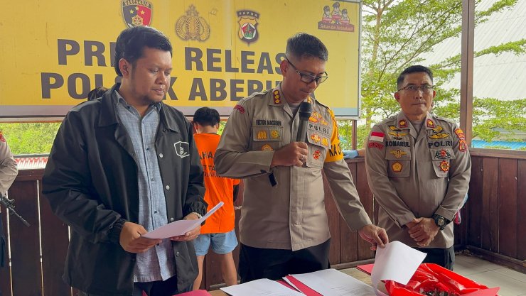 Ketiga tersangka dengan inisial masing-masing INB (29), RB (27) dan ISB (19) diungkapkan langsung oleh Kapolreta Jayapura Kota, Kombes Pol Dr. Victor D. Mackbon, S.H., S.IK., M.H., M.Si didampingi Kasat Reskrim AKP I GD Dewa Ditya K, S.I.K, M.H dan Kapolsek Abepura Kompol Komarul Huda, S.H di Aula Mapolsek Abepura.