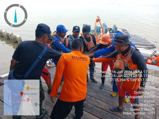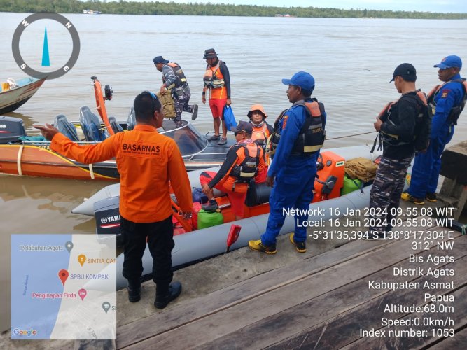 Polres Asmat dan Tim SAR Gabungan Lakukan Pencarian Korban Hilang di Perairan Asmat
