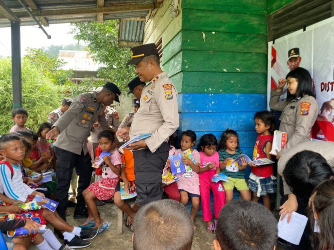 Polres Buru Selatan Distribusi Buku Untuk Anak-Anak Desa Labuang