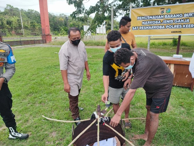 "Barang bukti yang kami musnahkan merupakan milik tersangaka AYT dan CAB. Keduanya saat ini sedang menjalani proses hukum ke tahap 1 dan akan berlanjut sampai ke tahap 2. Kami mendapat petunjuk dari Kejaksaan Negeri Jayapura untuk melakukan pemusnahan barang bukti secara resmi milik kedua tersangka yang turut disaksikan oleh perwakilan dari Kejaksaan Negeri Jayapura," ungkap Kasat Resnarkoba.