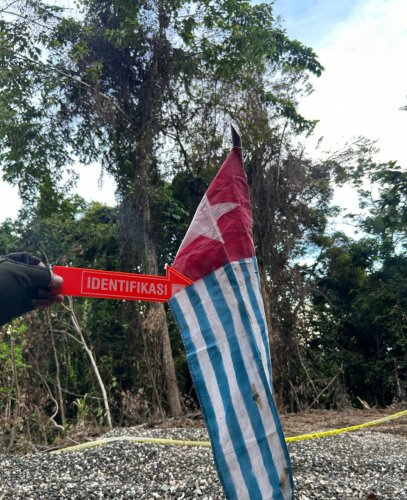 “Salah satu saksi menjelaskan bahwa kejadian makar tersebut terjadi pada Selasa (16/07) sekitar pukul 06.00 WIT, ia melihat ada palang yang terpasang di Lokasi penimbunan batu chiping dan melihat ada 2 (dua) orang yang berdiri menghadap ke arah tebing serta 1 buah bendera berukuran berbeda dan 1 lembar kain yang sudah tertancap diatas tumpukan batu chiping,” ucap Kapolres Kepulauan Yapen, Rabu (17/07/2024).