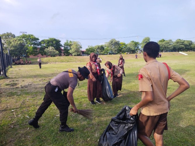 Kasat Binmas memberikan pesan kepada anak-anak Pramuka agar kegiatan kerja bhakti ini menjadi bukti konkret kerja sama dalam upaya pencegahan banjir, terutama karena sudah memasuki musim penghujan.