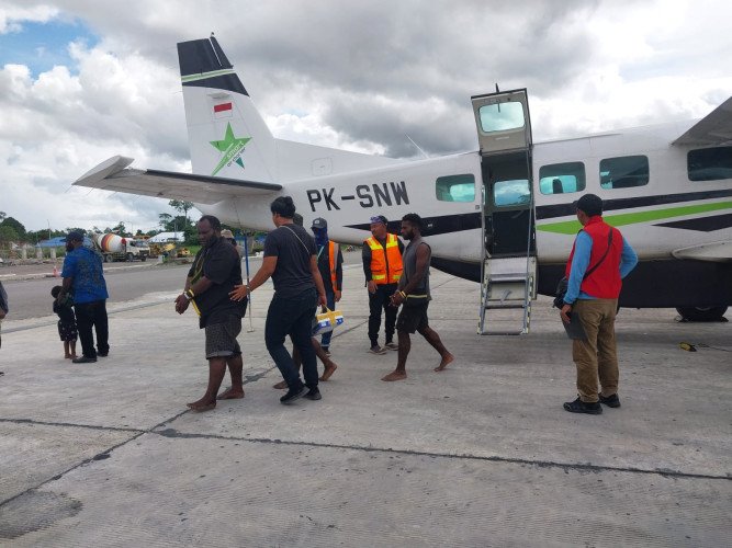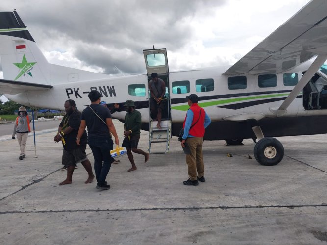 “Tepat pada Pukul 13.46 WIT, pesawat Smart Cakrawala Aviation C-208B-EX PK/SNW, Pilot Capt. Wahyu, landing di Bandara UPBU Mozes Kilangin Timika dengan membawa Kepala Perang dari kedua belah pihak beserta kelompok pendukungnya,”ujarnya.