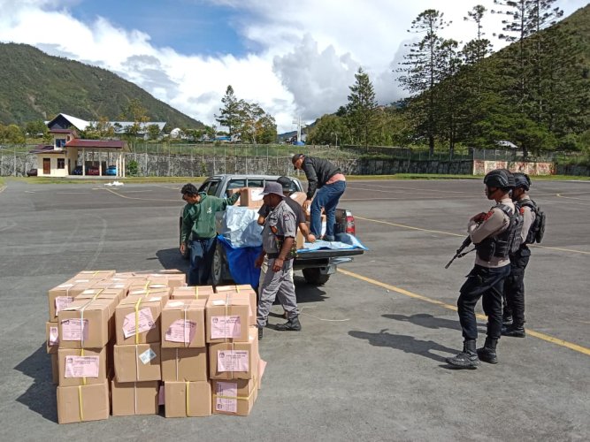 Kapolres Puncak Jaya AKBP Kuswara, S.H., S.I.K., M.H melalui Kabag Ops Kompol R. Ahmad Hari Junianto, S.Kom saat dikonfirmasi mengatakan bahwa dalam rangka memastikan kedatangan Logistik Pemilu 2024 tiba dalam keadaan aman dan lengkap dari Bandara Mulia menuju Kantor Gudang Logistik KPUD Mulia.
