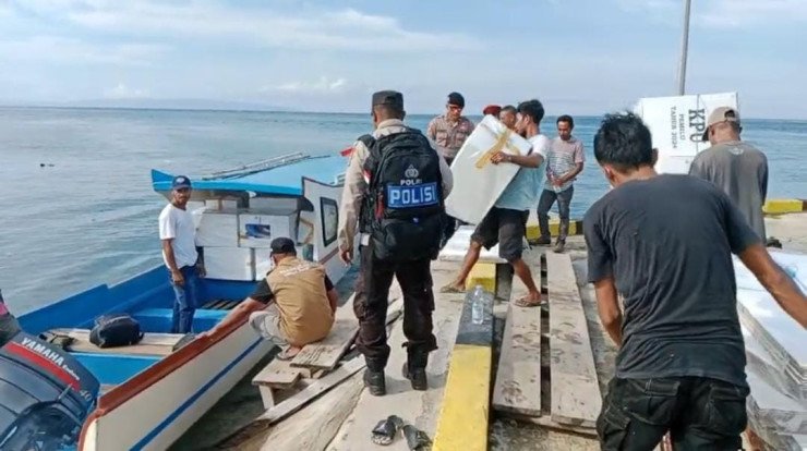 Papuanewsonline.com, Seram Bagian Timur - Aparat Polres Seram Bagian Timur (SBT) melakukan pengawalan dan pengamanan logistik Pemilu seperti kotak suara, surat suara dan perlengkapan TPS lainnya, Senin (12/2/2024).