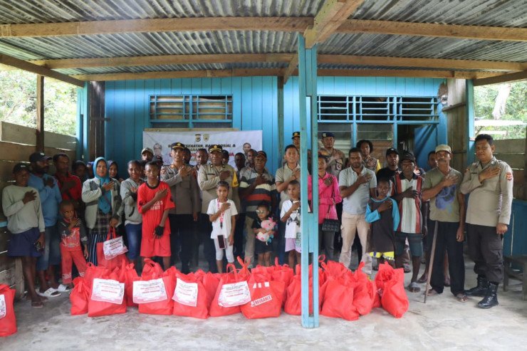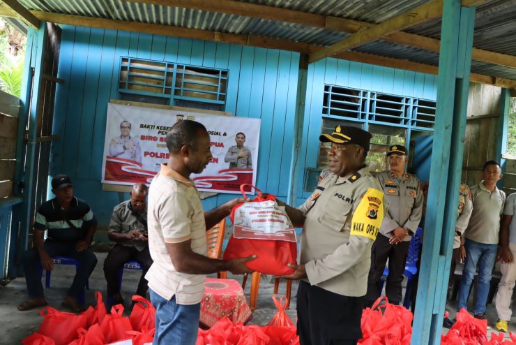 Polres Waropen Bagikan Paket Sembako Di Kampung Rondisi