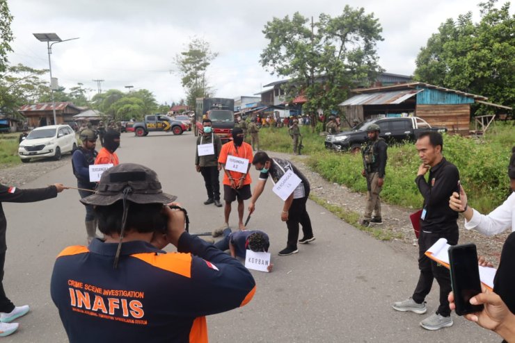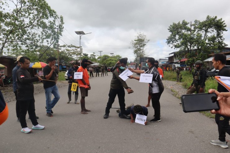 Polres Yahukimo Gelar Rekontruksi Kasus Penganiayaan Berat Terhadap Anggota Polisi
