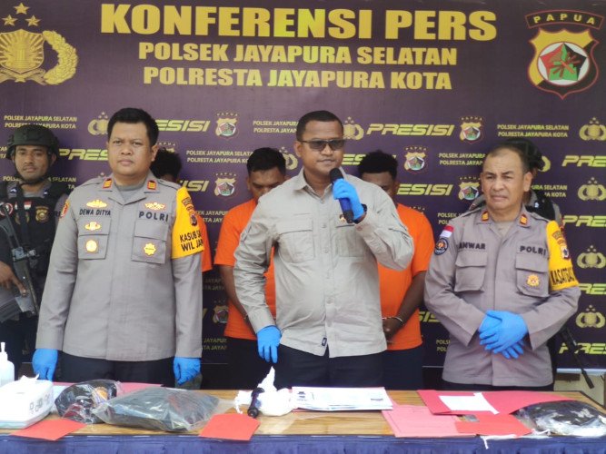 Hal tersebut diungkapkan Kapolresta Jayapura Kota melalui Kasat Reskrim Kompol Agus F. Pombos, S.I.K didampingi Kapolsek Jayapura Selatan AKP I Gede Dewa Aditya Krishnanda, S.I.K dan Kasi Humas Polresta AKP Muh. Anwar saat menggelar Press Conference kepada awak media bertempat di Mapolsek Jayapura Selatan, Selasa (16/4) siang.