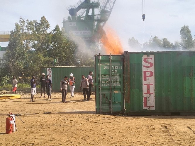 Diketahui kebakaran kontainer di areal pelabuhan Yos Sudarso Merauke dengan nomor SPNU 285088-9 MG, sekitar pukul 08.05 Wit di blok A ujung.