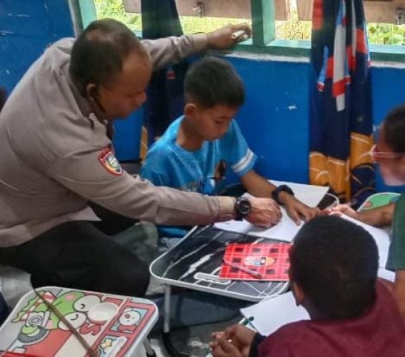 Polsek Sentani Ajarkan Baca Tulis Kepada Anak-Anak Jayapura