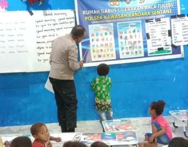 Papuanewsonline.com, Jayapura – Unit Binmas Polsek Kawasan Bandara Sentani melanjutkan komitmennya dalam meningkatkan kemampuan baca tulis di kalangan anak-anak melalui program Gerakan Baca Tulis (GABUS). Kegiatan ini dilaksanakan pada Senin (24/6), di kediaman Ibu Agustina Felle, seorang guru di SD Negeri Komba, Jln. Durian Komba, Kompleks Pegunungan Bintang.