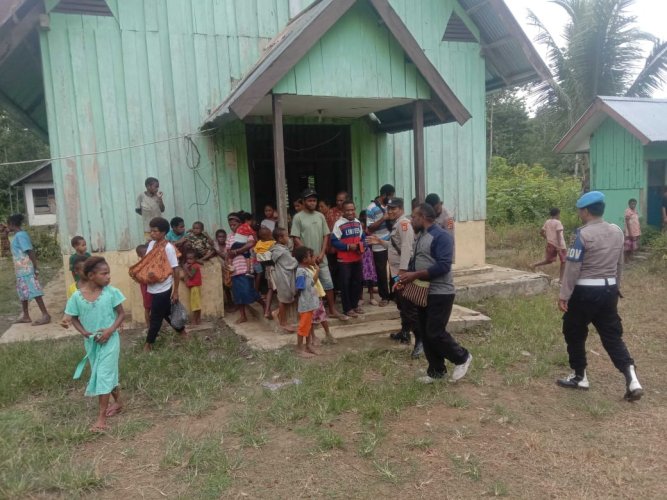 Papuanewsonline.com, Keerom – Kepolisian Resor Keerom melalui Polsek Waris melaksanakan pengamanan saat prosesi ibadah Minggu di Gereja Katholik Santo Petrus Kampung Yuwainda, Distrik Waris, Kabupaten Keerom, Minggu (04/08/2024).