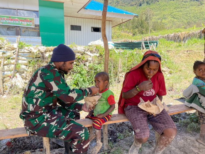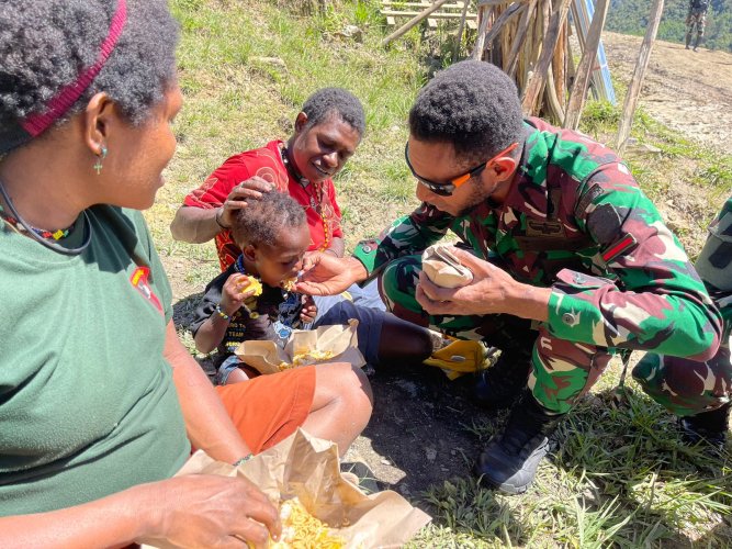 Pos Mayuberi Satgas Mobile Raider 300 Siliwangi Adakan Acara Makan Bersama Dengan Masyarakat Ilaga