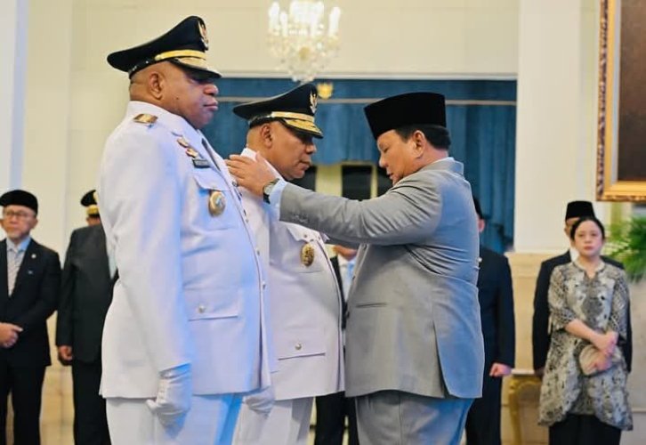 Papuanewsonline.com, Jakarta – Presiden Prabowo Subianto secara resmi melantik Matius Fakhiri sebagai Gubernur Papua dan Aryoko Alberto Ferdinand Rumaropen sebagai Wakil Gubernur Papua untuk masa jabatan 2025–2030. Upacara pelantikan berlangsung khidmat di Istana Negara, Jakarta, pada Rabu (8/10/2025).