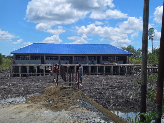 Proyek Pembangunan SMKN 5 Poumako Bermasalah, Proyek Diduga Dikerjakan Oknum PJU Polres Mimika