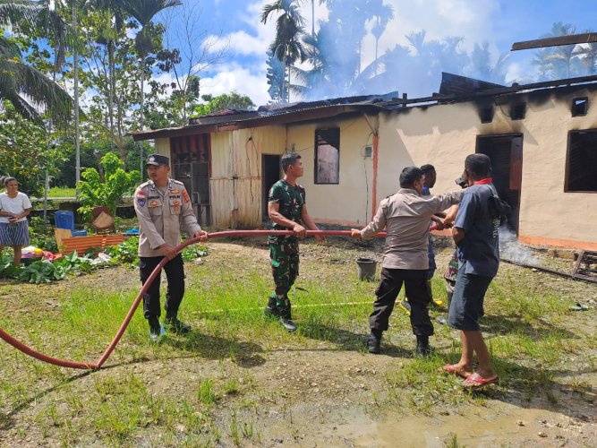 Respon Cepat Polres Keerom Datangi TKP Kebakaran di Rumah Warga