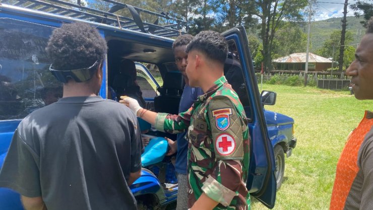 Responsif dan Bergerak Cepat Satgas Yonif 641/Bru Evakuasi Warga Bolakme Yang Terluka Parah