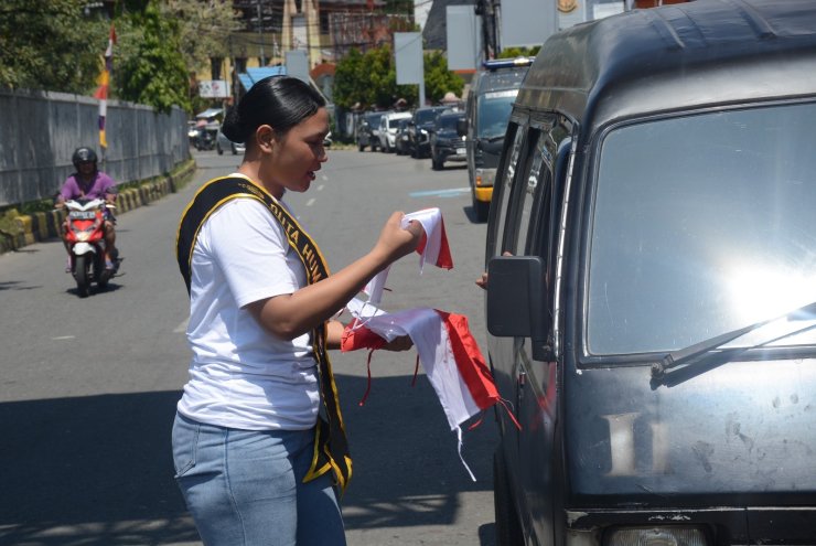 Sambut HUT RI Ke 79, Duta Humas Polda Papua Bagikan 500 Bendera Merah Putih