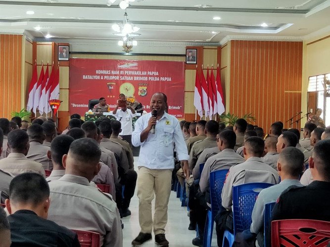 Papuanewsonline.com, Jayapura – Personil Batalyon A Pelopor Satuan Brimob Polda Papua mengikuti kegiatan Sosialisasi tentang HAM yang dibawakan oleh Komnas HAM RI Perwakilan Provinsi Papua.