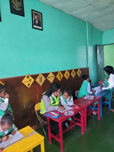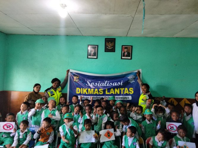 Kasat Lantas Polres Jayawijaya Iptu Toni Alua menyatakan bahwa dalam rangka sosialisasi peraturan lalu lintas sejak usia dini, pihaknya memberikan edukasi kepada anak-anak mengenai pengenalan rambu-rambu lalu lintas.