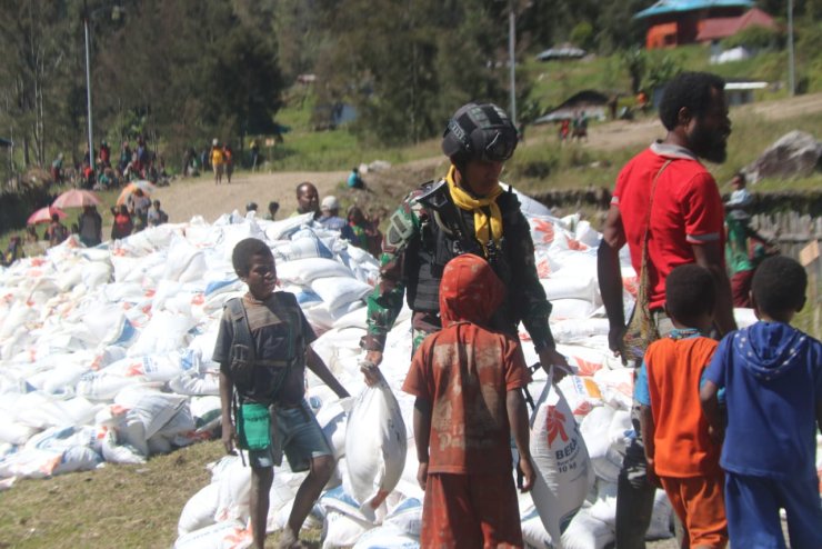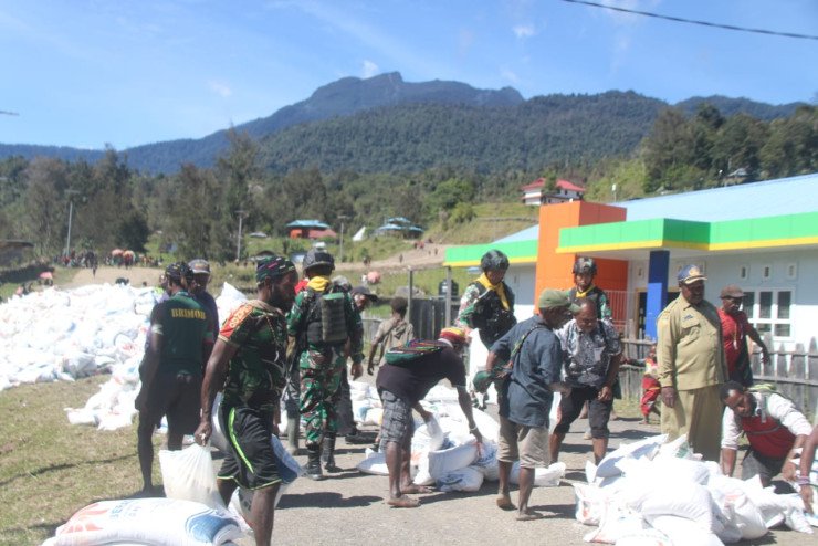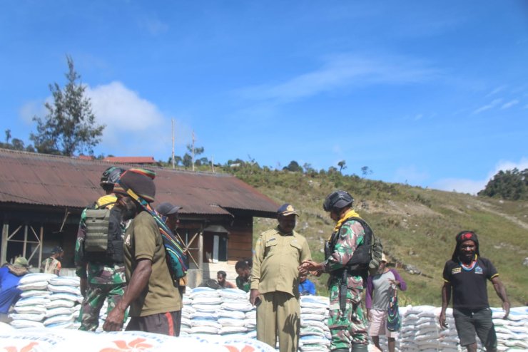 Bantuan beras Bulog ini merupakan bantuan dari Pemerintah Pusat melalui Kemensos RI yang didistribusikan bekerjasama dengan Dinsos Kab. Puncak. "Kami melaksanakan koordinasi yang baik dengan Apkam setempat untuk melaksanakan pengamanan ini, sehingga pendistribusian bantuan ini dapat berjalan dengan aman dan lancar" tambah Dansatgas.