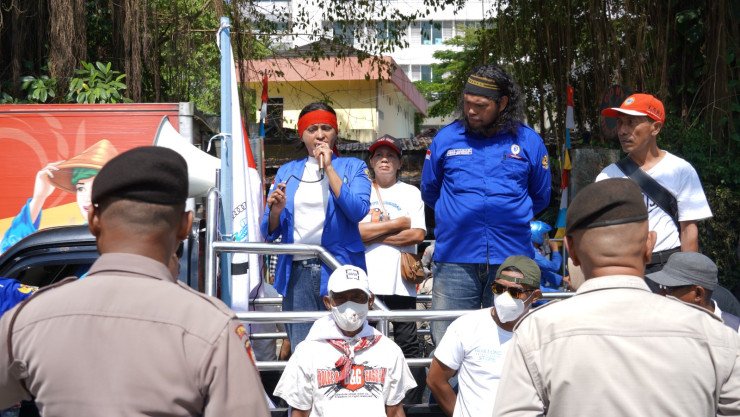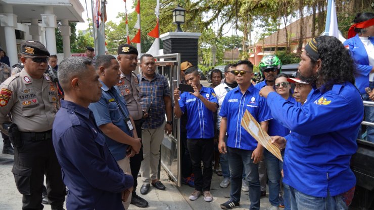 Papuanewsonline.com, Ambon -Satgas Operasi Mantap Brata (OMB) Salawaku Polda Maluku mengamankan aksi unjuk rasa damai yang dilaksanakan oleh Konfederasi Serikat Buruh Sejahtera Indonesia (KSBSI) Provinsi Maluku.