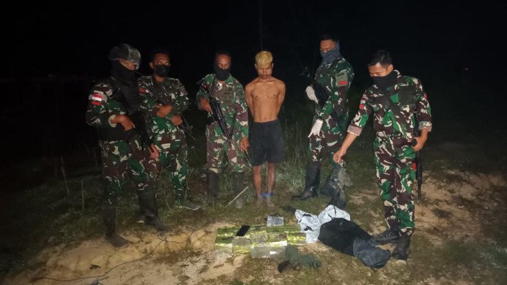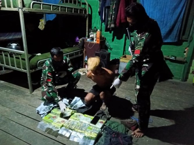 Dansatgas Pamtas RI - Malaysia Yonarmed 10/ Bradjamusti, Mayor Arm Ady Kurniawan, M.Han., menjelaskan bahwa barang haram tersebut diamankan oleh personel satgas saat melaksanakan patroli dari seorang laki-laki asal Bima, NTB inisial RD yang melintas melalui jalur tidak resmi.