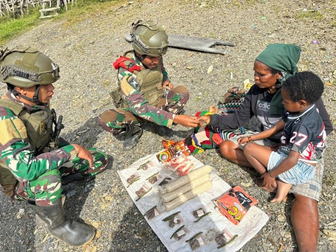 gembira. Salah satu warga, Mama Netalis, mengatakan bahwa keberadaan prajurit