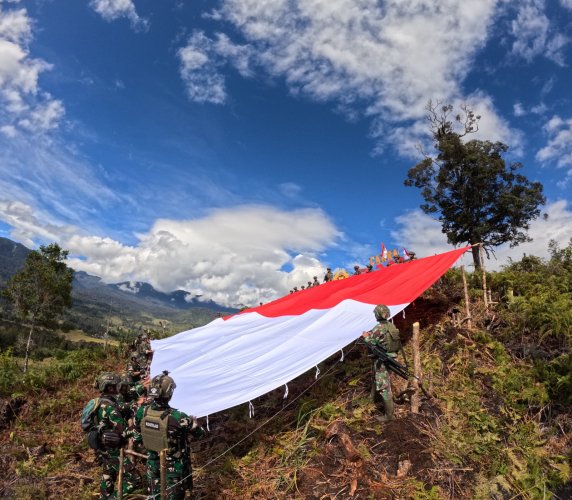 "Meskipun daerah ini merupakan daerah rawan dimana sering terjadi gangguan Organisasi Papua Merdeka (OPM), namun tidak menyurutkan semangat HUT kemerdekaan seluruh masyarakat di Kabupaten Puncak khususnya dengan pembentangan bendera berukuran raksasa ini merupakan simbol kedaulatan NKRI di Tanah Papua", tambah Dansatgas. (PNO-12)