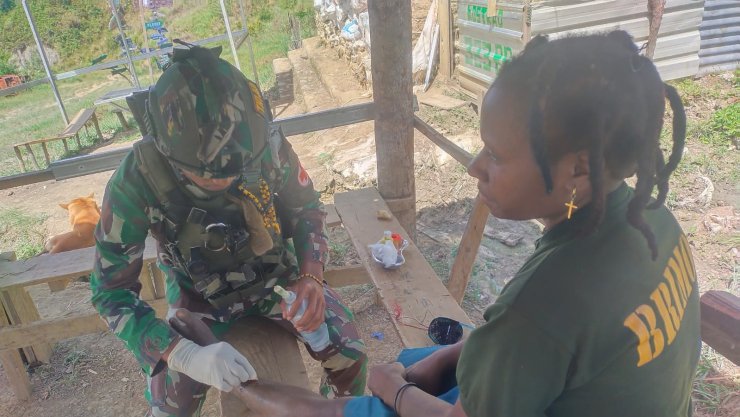Papuanewsonline.com, Ilaga Utara - Satgas Yonif 323 Buaya Putih Pos Mayuberi selalu siap memberikan pelayanan kesehatan untuk masyarakat, hal tersebut dilakukan guna memberikan kesempatan pada masyarakat Distrik Ilaga Utara yang sakit untuk datang berobat di Pos Mayuberi, Distrik Ilaga Utara, Kabupaten Puncak, Papua Tengah, (19/07/2024).