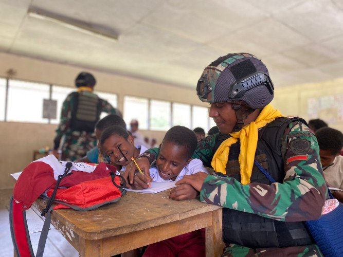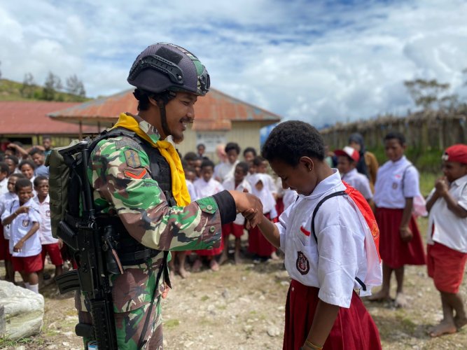 "Kami ikut membantu guru mengajar dan membagikan ratusan perlengkapan sekolah kepada anak-anak di daerah penugasan Papua berupa tas, buku tulis, buku bacaan anak-anak, pensil dll untuk mendukung pemerintah setempat dalam rangka mencerdaskan kehidupan Bangsa". Ujar Letkol Inf Afri Swandi Ritonga, S.I.P, Dansatgas Mobile Raider Raider 300/Bjw Kodam III Siliwangi seperti yg disampaikan pada release tertulisnya di Ilaga Kab. Puncak Papua. Selasa (26/09/2023)