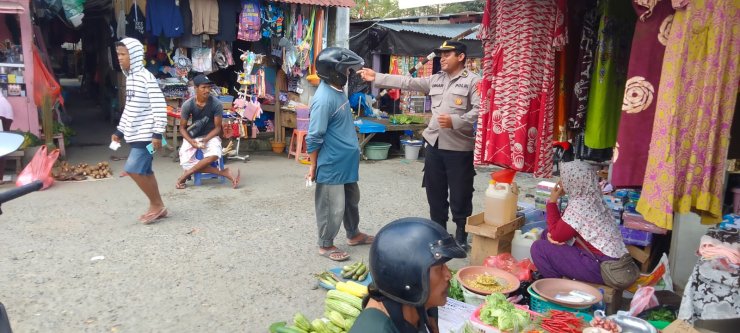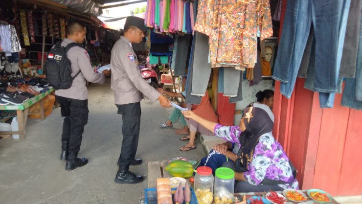 Sebarkan Brosur Himbauan Kamtibmas Di Pasar Waiheru, Polda Maluku: Jaga Situasi Tetap Kondusif