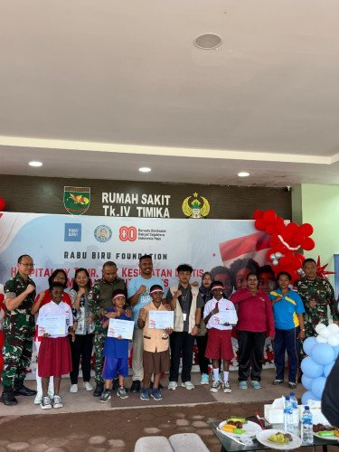 Papuanewsonline.com, Timika – Dalam suasana semarak peringatan HUT ke-80 Kemerdekaan Republik Indonesia, Yayasan Rabu Biru Indonesia menegaskan komitmennya untuk ikut membangun negeri melalui aksi nyata di bidang kesehatan. Jumat (15/8/2025), yayasan ini menggelar serangkaian kegiatan sosial dan kesehatan di RS TNI AD Tingkat IV Oro Doro Enakoa Timika, yang disambut antusias oleh masyarakat.