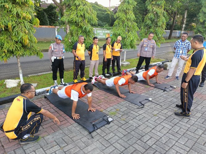 Tes kesamaptaan jasmani meliputi lari mengelilingi lapangan selama 12 menit, Pul Up, Sit Up, Pus Up dan Shutle run.