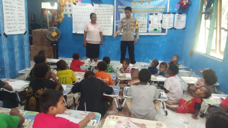Kapolres Jayapura AKBP Fredrickus Maclarimboen, S.I.K., M.H., melalui Kapolsek Kawasan Bandara Sentani Iptu Wajedi, S.H., M.Si., menyampaikan bahwa Bhabinkamtibmas terus konsisten mengajarkan anak-anak peserta didik.