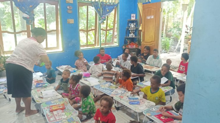 "Kegiatan belajar tersebut diajarkan langsung oleh Bhabinkamtibmas kami bersama ibu guru Agustina Felle. Mereka dibagi menjadi empat kelompok belajar dari usia kelompok bermain, PAUD, SD, dan paket yang berjumlah 25 peserta didik," kata Kapolsek.