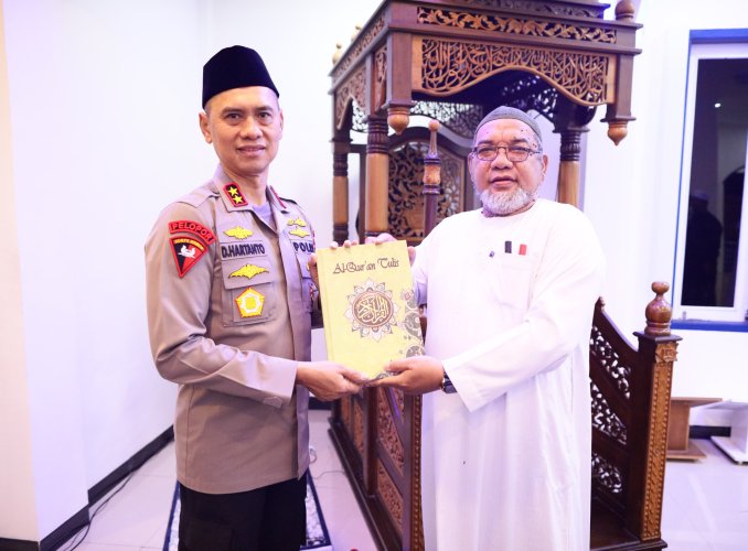 Dalam kesempatan berharga tersebut, Kapolda Maluku menerima sebuah Al-Qur’an tulisan tangan dari salah satu pengurus masjid sebagai bentuk penghargaan dan kenang-kenangan. Pemberian itu menjadi simbol kebersamaan antara Polri dan masyarakat dalam mengedepankan nilai religius serta memperkuat hubungan emosional yang harmonis.