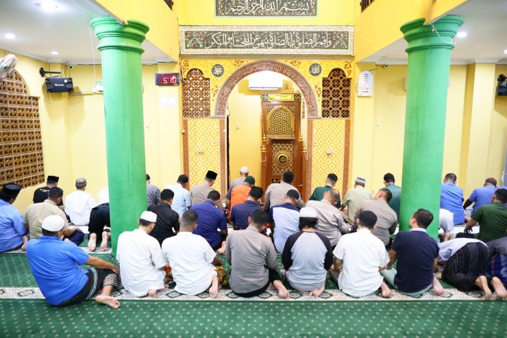 Sholat subuh berjamaah diimami Imam Masjid Nurul Mujahidin yang menjadi salah satu bentuk nyata komitmen Polda Maluku dalam mempererat silaturahmi dengan masyarakat, sekaligus menanamkan nilai-nilai spiritual sebagai landasan moral dalam menjalankan tugas menjaga kamtibmas.