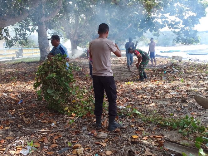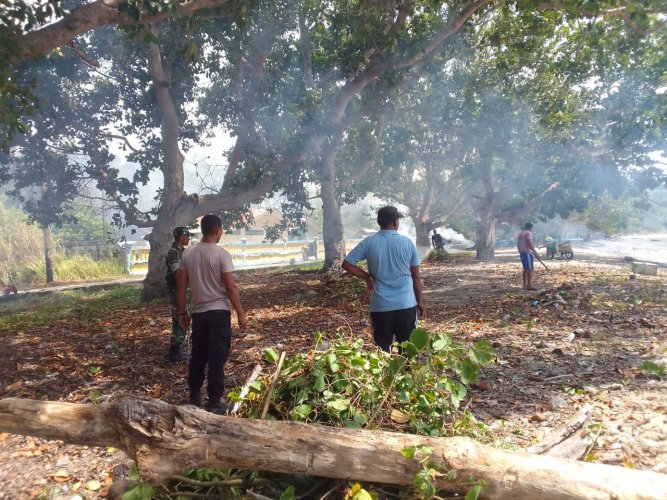 Terlihat Bhabinkamtibmas dan Babinsa bersama warga Dusun Aman Jaya melakukan kegiatan bhakti sosial (Bhaksos) bersih-bersih pantai, Selasa (22/11/2023) bertepatan dengan pelaksanaan Festival Kepulauan Manipa yang berlangsung pada tanggal 22 s.d. 23 November 2023, dimana pantai Dusun Aman Jaya ini akan dijadikan tempat/Spot perlombaan dayung dalam Festival tersebut.