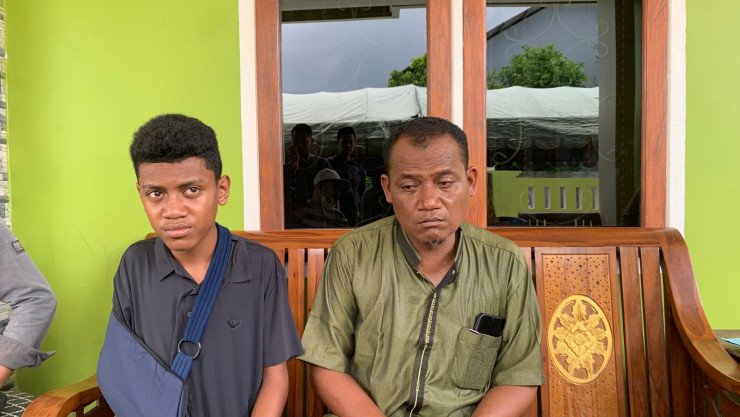 “Brimob itu langsung pukul adik saya dengan helm. Adik masih sempat jalan dengan motor agak jauh, baru jatuh. Motornya lari sendiri,” ungkap Nasri dengan tangan kanan yang kini patah akibat kejadian tersebut.