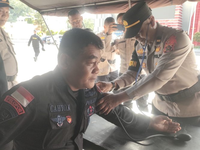 “Sub Satgas Dokkes menurunkan dua unit ambulans lengkap dengan tim medis. Pelayanan kesehatan ini mencakup pemeriksaan tensi, pemeriksaan kesehatan umum, serta pemberian bekal kesehatan berupa vitamin dan obat-obatan kepada petugas Polri yang bertugas menjaga keamanan, melayani masyarakat, dan melakukan pengamanan selama pelaksanaan operasi,” ujar Kompol Nurjanah.