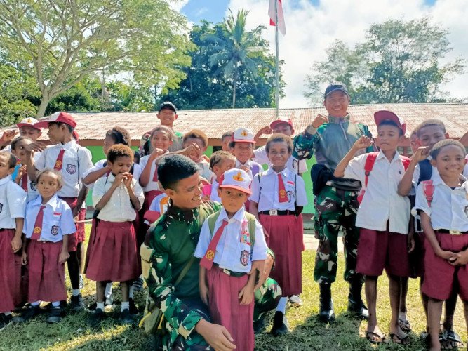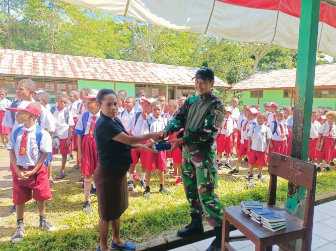 Papuanewsonline.com, Keerom - Personel satgas pamtas RI-PNG Yonif 122/TS pos waris, kembali mendatangi SD YPPK kenandega waris guna memberikan Kitab Alkitab berserta snack kepada guru dan anak-anak sekolah dasar yang berada di kampung Banda, distrik waris, kabupaten keerom, Papua (31-07-2024).
