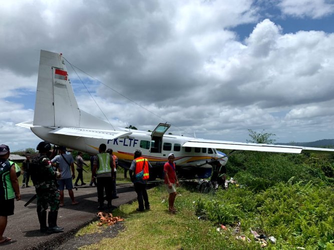 Terkendala Sistem Rem, Pesawat ASIAN ONE PK-LTF Keluar Dari Jalur Bandara Kenyam