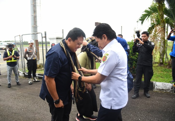 Kedatangan Kapolda disambut langsung di depan pintu gerbang ruang VVIP Bandara Pattimura. Pj Gubernur Maluku selanjutnya mengalungkan kain syal tenun khas provinsi Para Raja-raja ini. Sementara bucket bunga diserahkan oleh Pj Ketua PKK Maluku Ny. Nita Bin Umar kepada Ketua Bhayangkari Daerah Maluku Ny. Helen Eddy Tambunan.