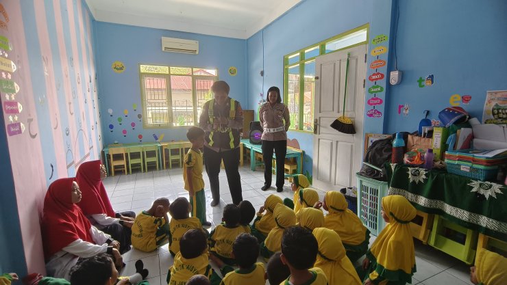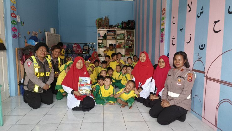Dua Personel yang menemani Ipada Fanny yakni Aipda Martina Meygar dan Brigpol Elmi Romera, pihaknya memberikan imbauan dan mengajarkan kepada anak-anak disana tentang pentingnya tertib berlalulintas untuk keselamatan.