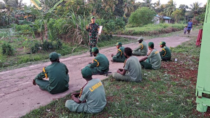 Papuanewsonline.com, Merauke - Dalam rangka menjaga keamanan dan ketertiban masyarakat, Satgas Yonif 125/Si’mbisa memiliki peran yang penting, termasuk dalam pembekalan anggota Perlindungan Mayarakat (Linmas) yang dilakukan oleh Pos Wanam di Kampung Wogikel, Distrik Ilwayab, Kabupaten Merauke. Kamis (18/07/2024).
